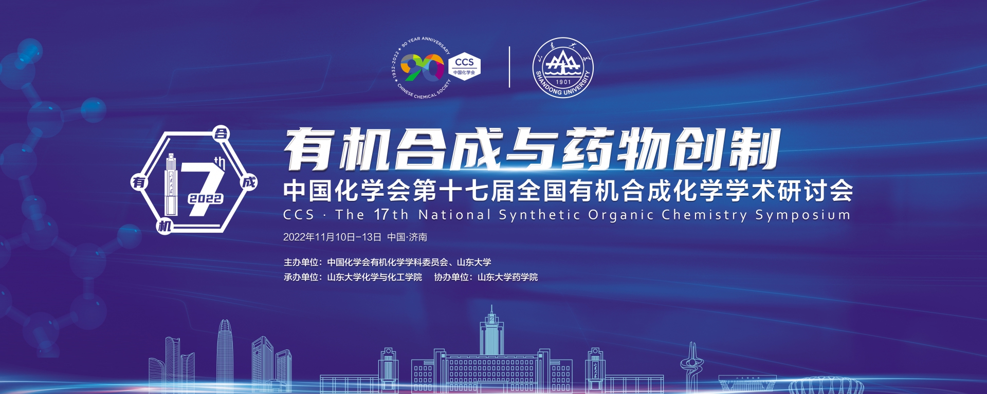 中國化學(xué)會第十七屆全國有機(jī)合成化學(xué)學(xué)術(shù)研討會定于2022年11月10至13日在山東省濟(jì)南市舉行。本次會議由中國化學(xué)會有機(jī)化學(xué)學(xué)科委員會、山東大學(xué)共同主辦,山東大學(xué)化學(xué)與化工學(xué)院承辦,山東大學(xué)藥學(xué)院協(xié)辦。